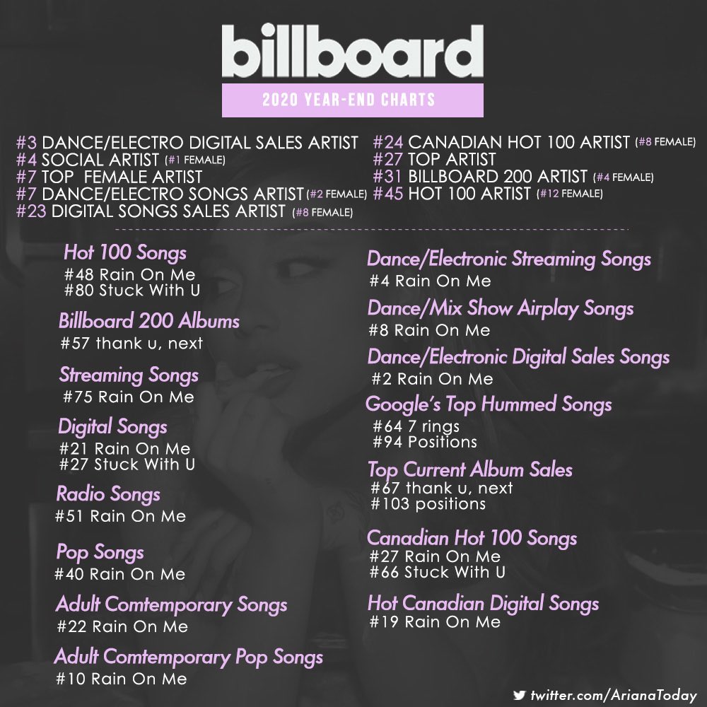 Ariana Grande Today On Twitter Arianagrande S Rankings On Billboard S 2020 Year End Charts Https T Co Cod1i9rzby Twitter