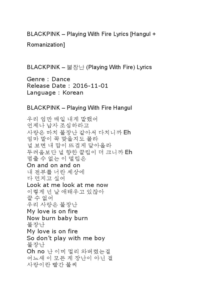 Blackpink Playing With Fire Pdf